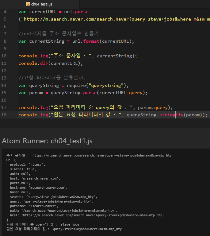 - querystring 모듈을 &로 구별되어있는 요청 파라미터를 쉽게 분리할 수 있게 된다.