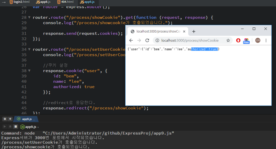- 쿠키는 클라이언트 웹 브라우저에 저장되는 정보를 일정 기간 동안 저장하고 싶을때 사용하게 된다. 익스프레스에서는 cookie-parser 미들웨어를 통해 쿠키를 설정하며 확인할 수 있다.
