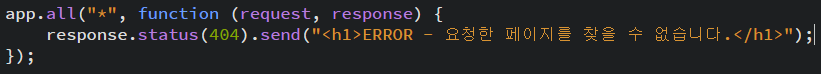 - all()을 통해 지정되지 않은 나머지 모두를 지정하고 콜백함수를 통해 잘못된 페이지라는 사실을 화면에 출력시켜준다.