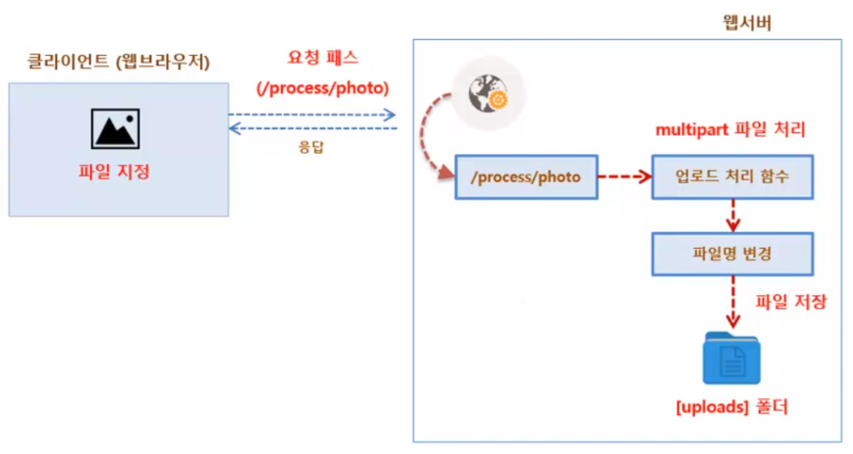 - 파일 업로드 기능을 구현할 때는 body-parser와 multer 등의 미들웨어를 사용하게 된다. 이렇게 여러 개의 미들웨어를 사용할 때는 서로간의 사용 순서에 따라 동작에 오류가 발생할 수 있다.