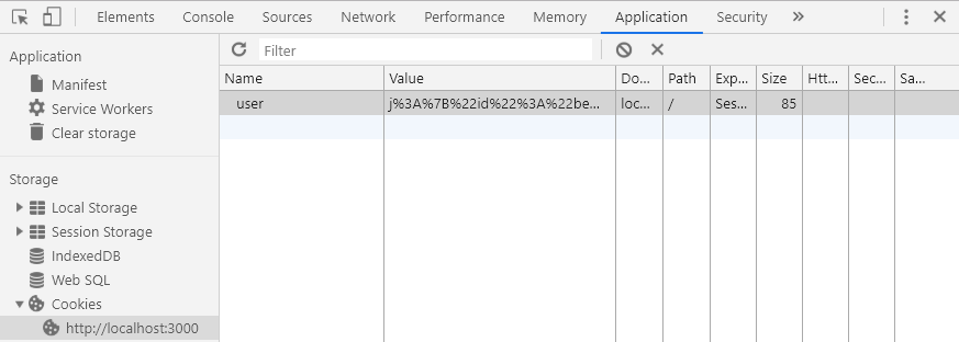 - 로그인 화면을 통해 정상적으로 로그인한 후 세션이 만들어진다면 connect.sid 쿠키가 브라우저에 저장된다.