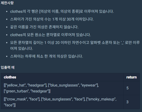 문제 링크 : https://programmers.co.kr/learn/courses/30/lessons/42578