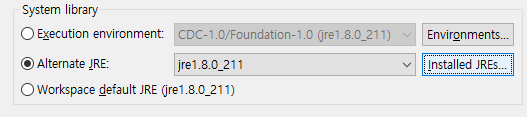 - PC의 JDK폴더 내부의 JRE VM을 참조하도록 설정을 변경한다면 문제가 해결된다.