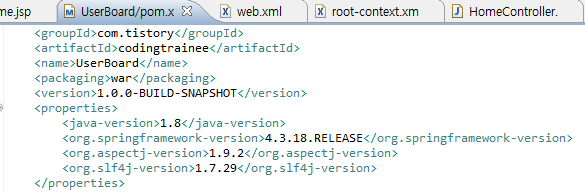 - pom.xml : Maven에서 참조하는 설정 파일이다.