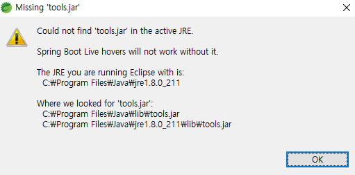- 해당 오류가 발생하 때는 보통 JRE가 PC에 설치된 JRE폴더의 VM을 참조해 발생하는 문제이다.