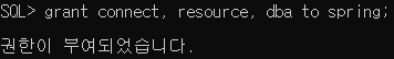 - 접속, 리소스 사용, DB관리 권한을 부여한다는 의미를 가지고 있다.