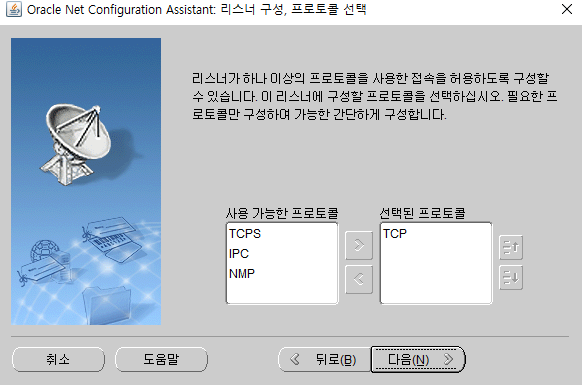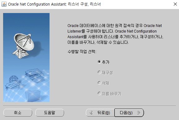 - Net Configuration Assistant를 실행 후 위 사진을 따라 진행하면 새로운 리스너가 생성된다.
