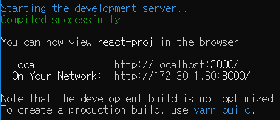 - yarn start 명령을 통해 개발 모드로 어플리케이션을 실행시킨다.